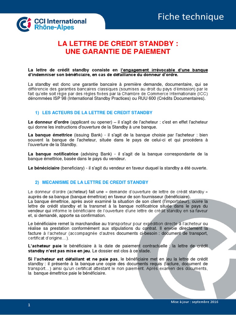 La Lettre de Crédit Standby Lettre de crédit Droit des affaires